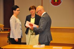 A pomniejsz czcionkę A standardowy rozmiar A powiększ czcionkęStopień awansu zawodowego nauczyciela mianowanego otrzymały 32 osoby, które zdały egzamin. Potwierdzenie uzyskania tytułu wręczył Prezydent Grudziądza Robert Malinowski dziś, tj. 10 sierpnia w Urzędzie Miejskim.