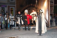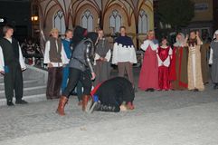 Widowisko, w formie retrospekcji, przypomniało widzom dramatyczny los chorążego ziemi chełmińskiej, jednego z założycieli Związku Jaszczurczego, który wraz z chorągwią rycerstwa chełmińskiego, podczas bitwy grunwaldzkiej, opuścił pole walki. Takie działanie zakon krzyżacki uznał za zdradę. W maju 1411 r. mimo posiadanego listu żelaznego oraz wbrew ustaleniom pokoju toruńskiego, który zakazywał ścigania osób uznanych przez strony za zdrajców, został uwięziony na zamku koło Chełmna. Po czterech dniach ścięto go na Rynku w Grudziądzu.