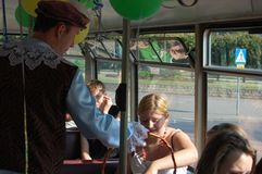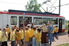 Od godz. 9.00, na trasie Tarpno – Rządz, kursował specjalny tramwaj, z którego mogły korzystać dzieci wraz z opiekunami. Podczas podróży najmłodszym pasażerom towarzyszyli przebrani za bajkowe postacie, m.in. prezydent Robert Malinowski, wiceprezydenci Marek Sikora i Przemysław Ślusarski oraz Sekretarz Miasta Tomasz Szymański. W trakcie jazdy rozdawali drobne upominki i słodycze. Akcję zorganizował Wydział Transportu, Edukacji, Kultury, Sportu i Promocji, a także Straż Miejska i Miejski Zakład Komunikacji.