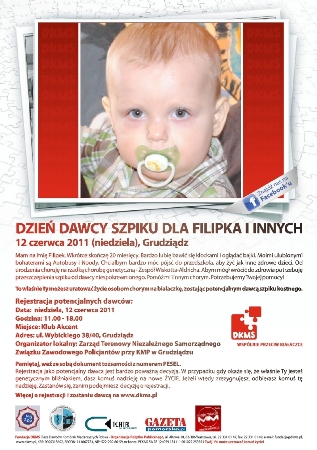 Akcja zainicjowana została przez Zarząd Terenowy Niezależnego Samorządnego Związku Zawodowego Policjantów przy Komendzie Miejskiej Policji w Grudziądzu z myślą o 20-miesiecznym Filipku chorym na Zespół Wiskotta-Aldricha, rzadkie schorzenie genetyczne oraz o innych chorych na białaczkę. Do rejestracji niezbędny jest dokument tożsamości zawierający nr PESEL.