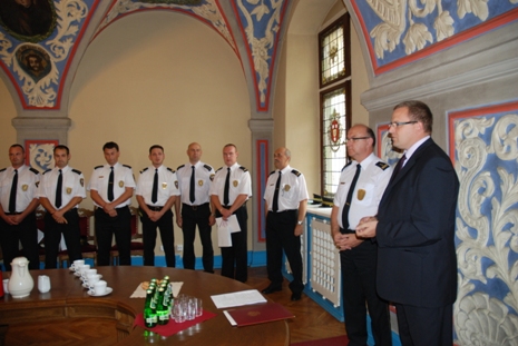 A pomniejsz czcionkę A standardowy rozmiar A powiększ czcionkęZ okazji Święta Straży Miejskiej dziś, tj. 29 sierpnia zorganizowano spotkanie w Ratuszu. W uroczystościach brał udział m.in. w imieniu Prezydenta Grudziądza wiceprezydent Marek Sikora oraz Arkadiusz Goszka, Przewodniczący Rady Miejskiej.