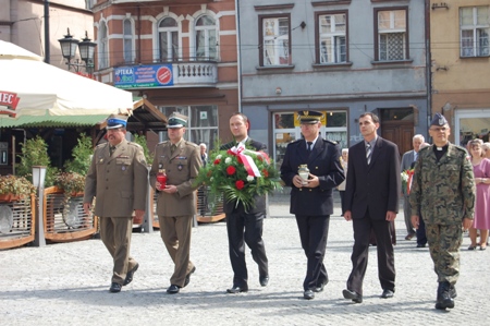 A pomniejsz czcionkę A standardowy rozmiar A powiększ czcionkęW 72. rocznicę wybuchu II wojny światowej, dziś, tj. 1 września Tomasz Szymański, Sekretarz Miasta i jednocześnie Rady Sejmiku Województwa Kujawsko-Pomorskiego, Komendant Straży Miejskiej, Jan Przeczewski, mjr Andrzej Makowski wraz z kombatantami złożyli kwiaty pod pomnikiem Żołnierza Polskiego na Rynku i 10 Pomordowanych przy budynku NOT-u oraz na cmentarzu pod Pomnikiem Bohaterskich Żołnierzy Polskich Poległych w Kampanii Wrześniowej 1939 r.