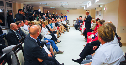 - Gratuluję Państwu cierpliwości, bo wiem, że budowa lecznicy trwała wiele lat, dziś już udowodniliśmy, że takie obiekty mogą powstawać szybko i sprawnie. Z moich osobistych doświadczeń wiem, że najczęściej wizyta w takim miejscu nie jest łatwa i przyjemna, ale patrząc na ten obiekt myślę, że nie musi za sobą nieść negatywnych emocji. Wierzę, że w ramach kolejnego rozdania środków unijnych znajdą się pieniądze na inwestycje – mówił Premier Donald Tusk.