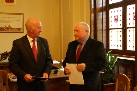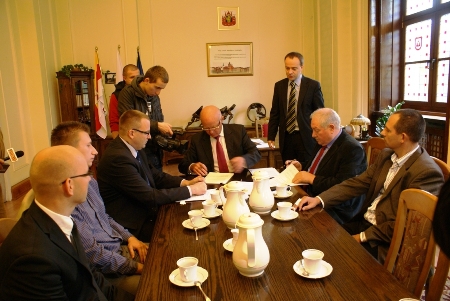 A pomniejsz czcionkę A standardowy rozmiar A powiększ czcionkęPrezydent Grudziądza Robert Malinowski oraz Grzegorz Rozmus, prezes Przedsiębiorstwa Budowy Dróg S.A. ze Starogardu Gdańskiego podpisali dziś, tj. 11 października umowę na budowę III podetapu Trasy Średnicowej. Wartość kontraktu wynosi 44 720 785,90 zł.