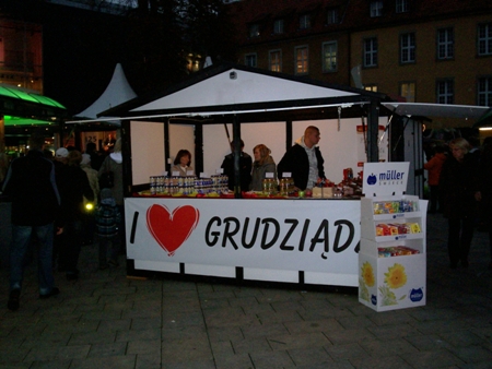 Codziennie od godz. 11.00 do 22.00 w Centrum Gütersloh funkcjonuje 50 stoisk, na których odbywa się degustacja i sprzedaż artykułów spożywczych. W tym gronie oferowane są również wyroby z Grudziądza, m.in. majonezy, sosy, musztardy oraz szynka i wędliny. Dodatkowo uczestnicy jarmarku mają możliwość zapoznania się z ofertą turystyczną naszego miasta, a także proponuje im się całą gammę świec zapachowych przygotowaną przez Fabrykę Świec Muёller z Białego Boru koło Grudziądza.