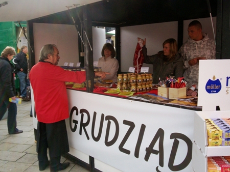 - Nasze stoisko cieszy się dużym zainteresowaniem uczestników jarmarku, którzy pytają m.in. o jakość oferowanych przez nas produktów oraz ich pochodzenie. Zabraliśmy ze sobą folder w języku niemieckim pt. „Grudziądz na weekend”, który wręczamy wszystkim zainteresowanym przyjazdem do naszego miasta – mówi Arkadiusz Cichosz, pracownik Biura Prezydenta.