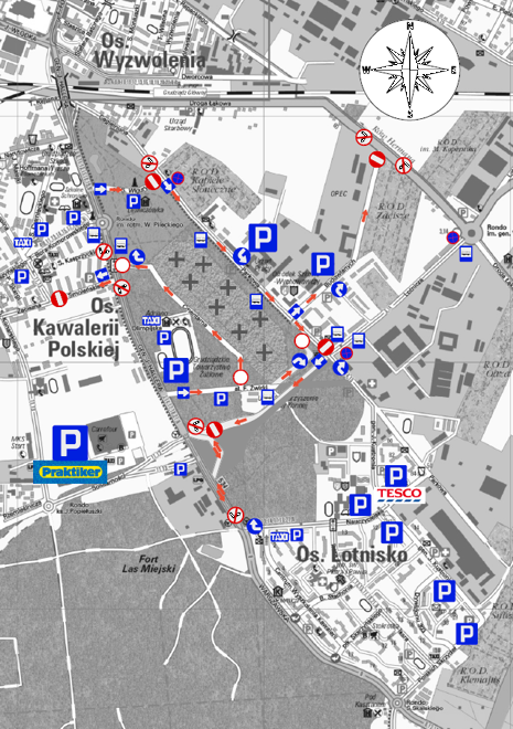 Z ruchu drogowego wyłączona zostanie ul. Cmentarna natomiast w ciągu ul. Parkowej od ul. Aleja Wigury w kierunku ul. Lotniczej wprowadzony zostanie ruch jednokierunkowy z lewostronnym zakazem zatrzymywania się, gdzie parkowanie pojazdów będzie możliwe w istniejących zatokach postojowych. Z kolei w ciągu ulic Budowlanych i Żwirki wprowadzony zostanie ruch jednokierunkowy, w pierwszym przypadku z najazdem od ul. Parkowej, a w drugim od ul. Hallera. Postój w tych miejscach będzie dozwolony wyłącznie przy krawędzi jezdni. Warto też pamiętać, że jeden kierunek przejazdu zacznie obowiązywać na ul. Aleja Wigury z najazdem od ul. Hallera, a ul. Lotnicza zostanie całkowicie wyłączona z postoju pojazdów.