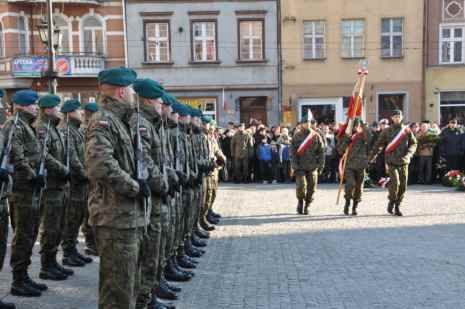 - Spotkaliśmy się, aby wspólnie świętować dzień, w którym 93 lata temu Rzeczpospolita Polska odzyskała niepodległość. W tym szczególnym miejscu, u stóp Pomnika Żołnierza Polskiego warto podkreślić, jak ogromną rolę w dziele niepodległościowym odegrała siła oręża polskiego i ofiarność całego narodu – mówił prezydent Robert Malinowski.