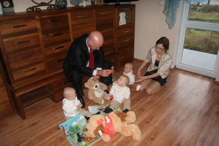 Trojaczki otrzymały także pluszowe zabawki. W imieniu dzieci, rodzice przekazali włodarzowi miasta pamiątkowy upominek za pomoc w dorastaniu i rozwoju.