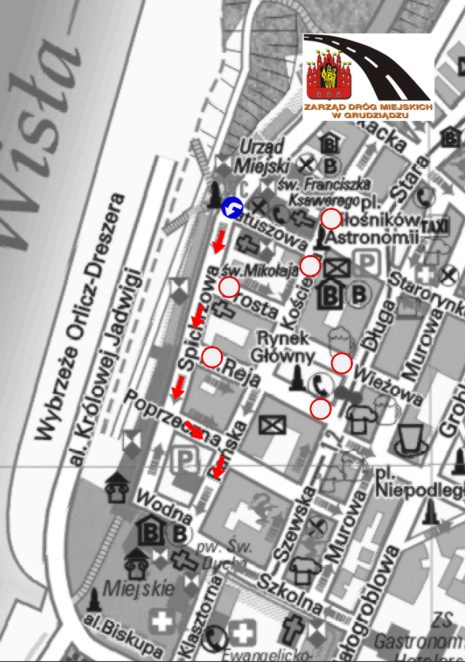 Informujemy ponadto, że do 5 grudnia obowiązywać będzie nowa organizacja ruchu na Starym Mieście. Wyłączona z ruchu pojazdów jest ul. Kościelna na odcinku od ul. Ratuszowej w kierunku Rynku, ul. Reja oraz ul. Prosta. Objazd wyznaczono ul. Ratuszową, Spichrzową, Poprzeczną i Pańską. Kierowców prosimy o korzystanie z parkingów zlokalizowanych na Błoniach Nadwiślańskich oraz na ul. Sienkiewicza w pobliżu targowiska miejskiego.