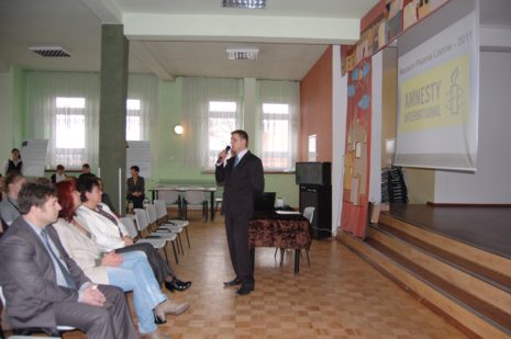 A pomniejsz czcionkę A standardowy rozmiar A powiększ czcionkęW ramach obchodów Międzynarodowego Dnia Praw Człowieka w Zespole Szkół Gastronomiczno-Hotelarskich dziś, tj. 9 grudnia zorganizowano maraton pisania listów w obronie poszkodowanych na całym świecie. W wydarzeniu uczestniczył wiceprezydent Przemysław Ślusarski oraz Joanna Iwanowska, przewodnicząca Komisji Edukacji Rady Miejskiej Grudziądza.