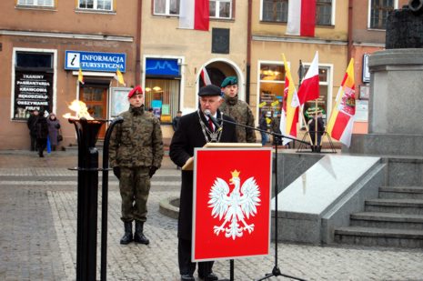 - Spotkaliśmy się, aby świętować przywrócenie naszego miasta w granice Rzeczpospolitej Polskiej. Dzisiejsza uroczystość przypomina nam, jak wielką wartością dla mieszkańców Grudziądza był język, tradycja i kultura. Swoją przynależność do narodu polskiego i uczucia patriotyczne grudziądzanie mogli wyrazić swobodnie dopiero 23 stycznia 1920 r. Dali oni upust swojej radości gromadząc się tłumnie na Rynku i witając oddziały Wojska Polskiego, które pod dowództwem gen. Stanisława Pruszyńskiego wkroczyły majestatycznie do miasta – mówił prezydent Robert Malinowski.