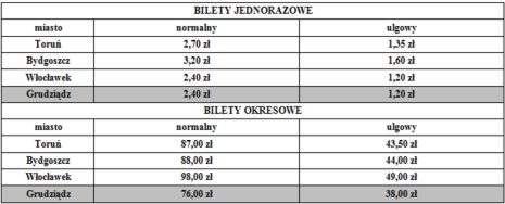 Poniżej znajdują się tabele, w których porównano ceny biletów komunikacji miejskiej w wybranych miastach regionu, a także informacje o nowych stawkach: