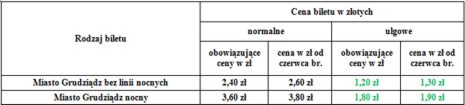 Nowe stawki cen biletów będą obowiązywać od czerwca br. Bilet normalny będzie kosztował 2,60 zł, z kolei 1,30 zł.