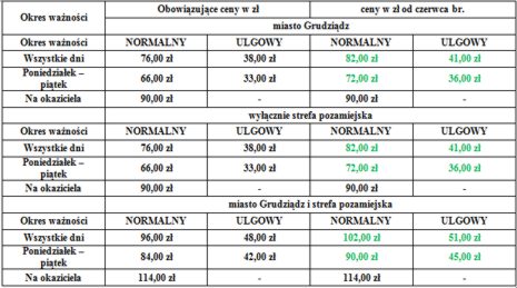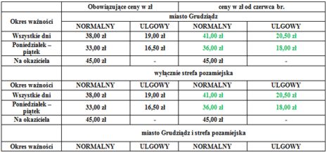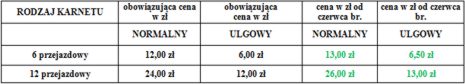 Zmiany cen biletów od czerwca