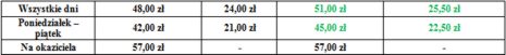 Ceny biletów okresowych - połowa miesiąca: