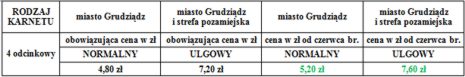 Ceny urzędowe karnetu wieloprzejazdowego sprzedawanego wyłącznie w środkach komunikacji miejskiej: