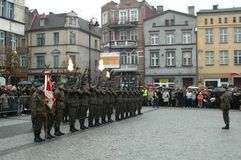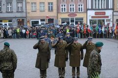 A pomniejsz czcionkę A standardowy rozmiar A powiększ czcionkęW ramach obchodów Narodowego Święta Niepodległości w Grudziądzu odbyły się uroczystości patriotyczne na Rynku z udziałem m.in. prezydenta Roberta Malinowskiego, posłów Marzenny Drab i Janusza Dzięcioła, Czesława Szachnitowskiego, honorowego obywatela Grudziądza, płk Grzegorza Mosiołka, Dowódcy Garnizonu Grudziądz, radnych, przedstawicieli organizacji kombatanckich i służb mundurowych, Kompanii Honorowej Wojska Polskiego oraz pocztów sztandarowych.