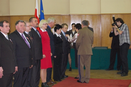 Ordery przyznano w uznaniu zasług położonych w dziedzinie rozwoju i umacniania obronności Rzeczypospolitej Polskiej. W gronie wyróżnionych znaleźli się: Roman Komorek inspektor Wydziału Zarządzania Kryzysowego Urzędu Miejskiego, Aleksander Berlik, specjalista ochrony środowiska firmy Venture Industries Sp. z o.o., Piotr Mazur, również inspektor Wydziału Zarządzania Kryzysowego Urzędu Miejskiego oraz Jędrzej Zieliński, nauczyciel Zespołu Szkół Technicznych. Pierwszy z nich otrzymał srebrny, a pozostali brązowe medale.